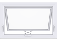 Awning windows have a single glass panel that is hinged at the top and swings open from the bottom. The awning window opens out, and away from the wall in an upward swing.